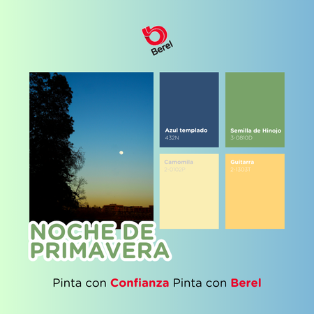 - Colores que inspiran: Elige colores que inspiren y suban el ánimo. Este mes, las tendencias giran en torno a tonos alegres y enérgicos que despierten los sentidos. Desde tonalidades vibrantes de azules y verdes hasta cálidos tonos terrosos, la paleta de colores para abril es una oda a la vitalidad y al positivismo. Conoce las paletas Berel que te proponemos para esta temporada: