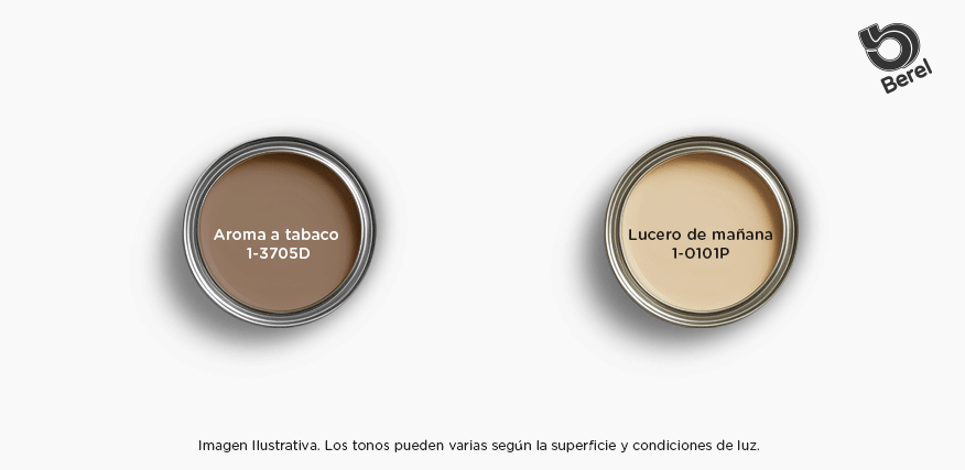 En dormitorios, la combinación de Lucero de Mañana 1-0101P con Aroma Tabaco 1-3705D genera una atmósfera de descanso, estabilidad y confort. Son tonos que envuelven el espacio y transmiten sensación de refugio.
